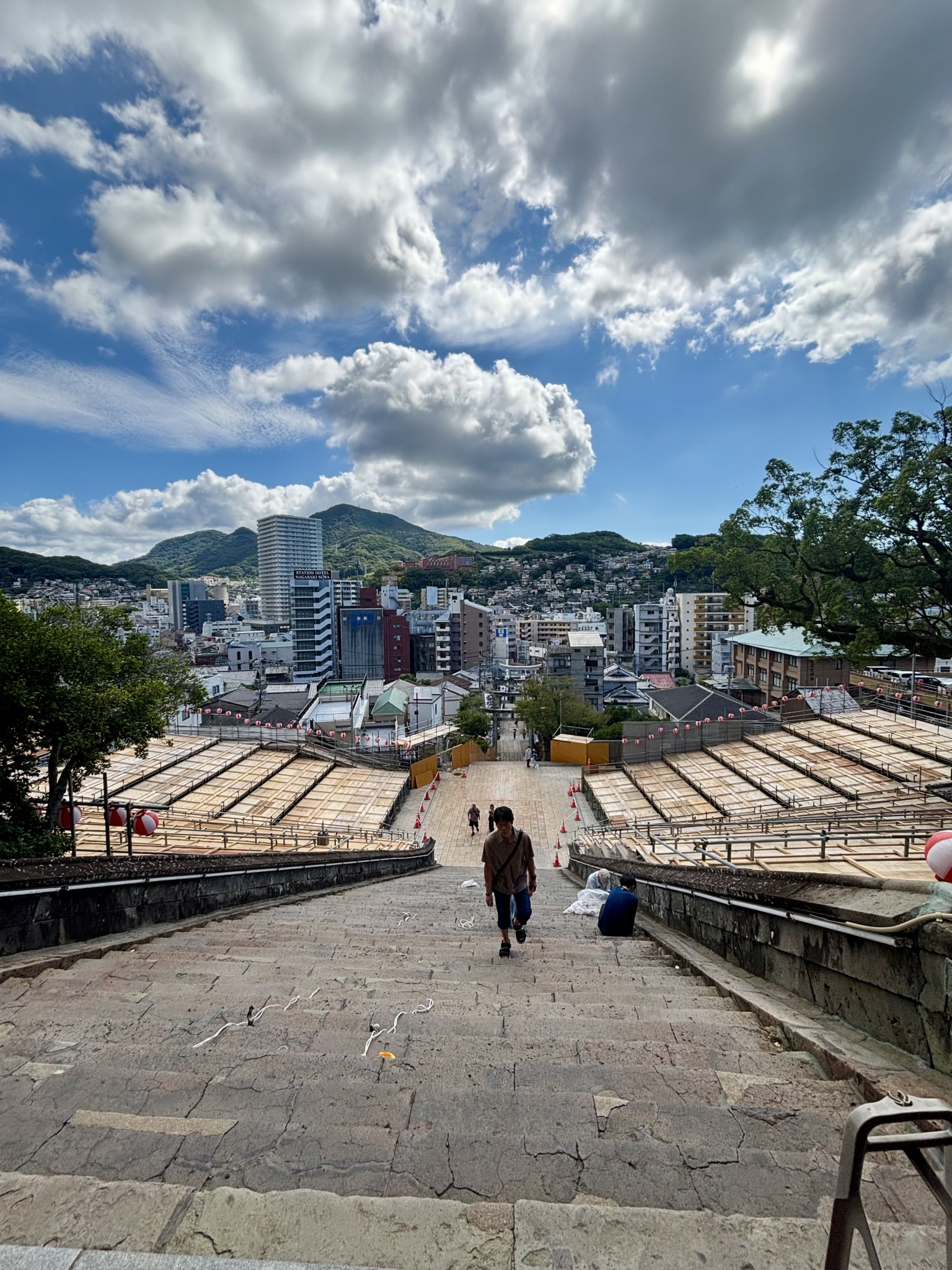 ちょうど数日後から、長崎の秋を代表する祭り「長崎くんち」が始まるそうで、境内には観覧席のようなものが設置されていました。