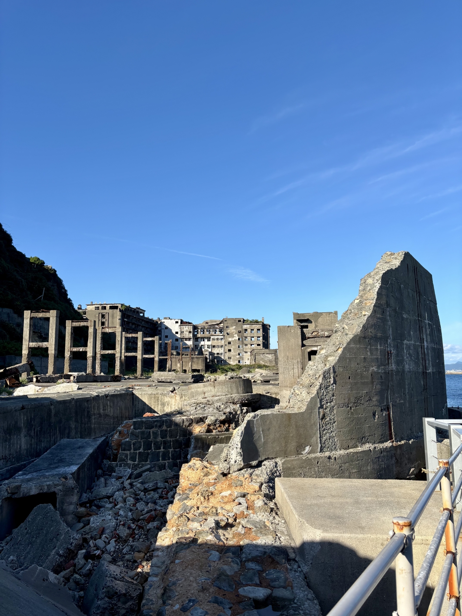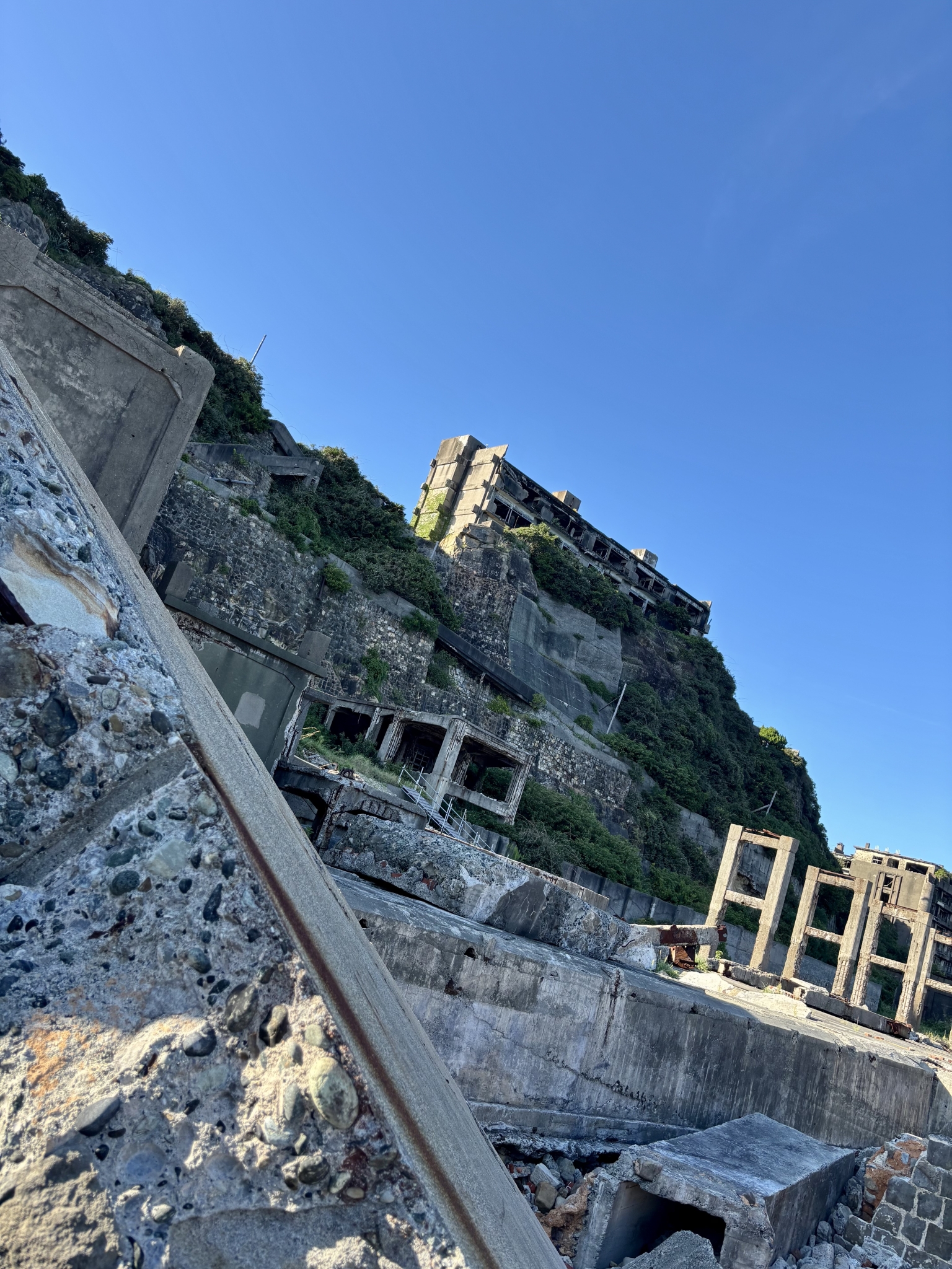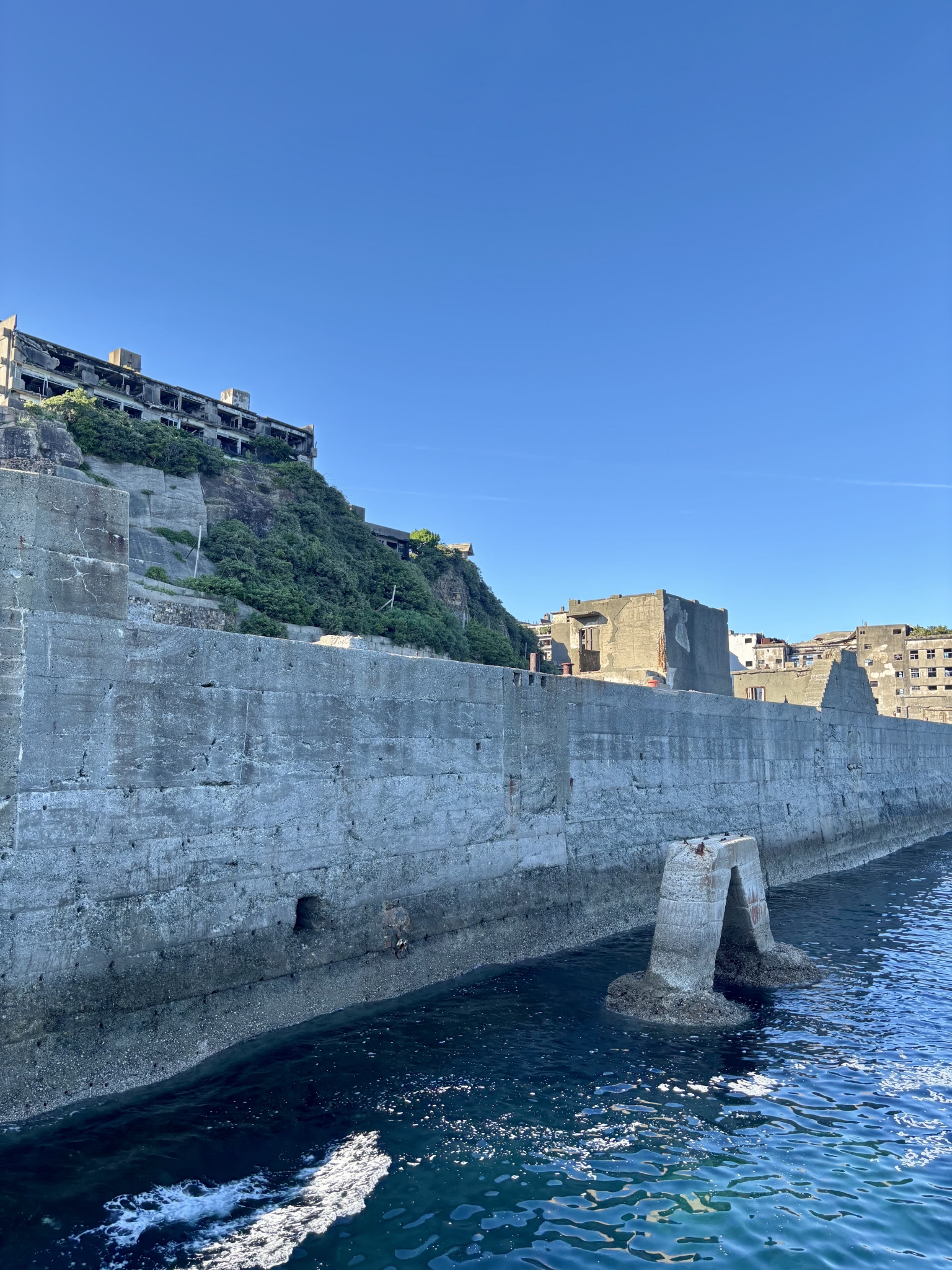 ドラマで最盛期の軍艦島を見ていたこともあり、目の前の廃墟となった姿には特別な感慨があります。